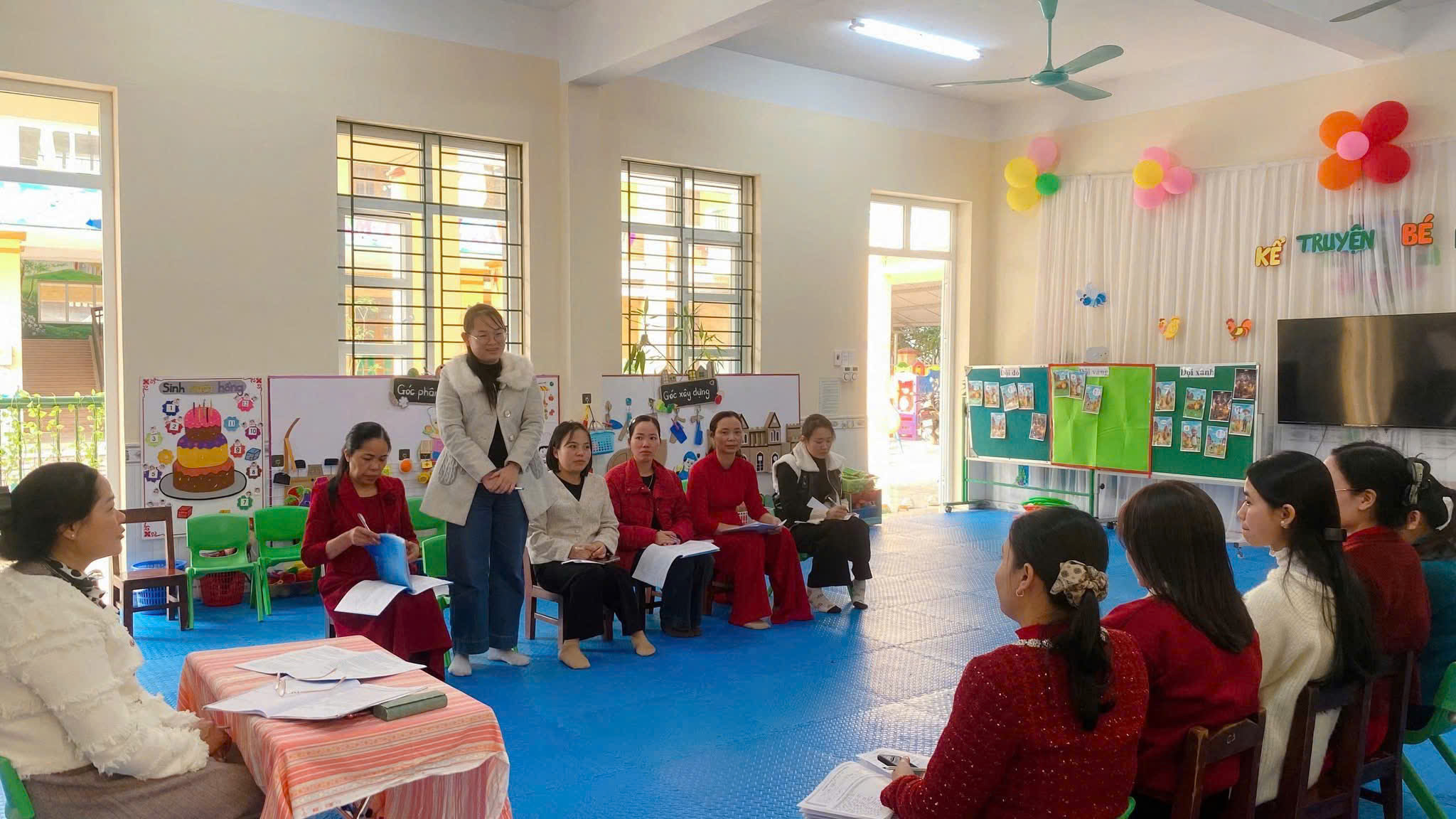 Công tác bồi dưỡng chuyên môn, nghiệp vụ cho đội ngũ giáo viên luôn được Trường MN Nhân Nghĩa quan tâm và chú trọng. Một trong những hình thức hiệu quả là sinh hoạt chuyên môn theo nghiên cứu bài học – cách làm thiết thực giúp giáo viên cùng học hỏi, chia sẻ kinh nghiệm và lấy hoạt động của trẻ em làm trung tâm.