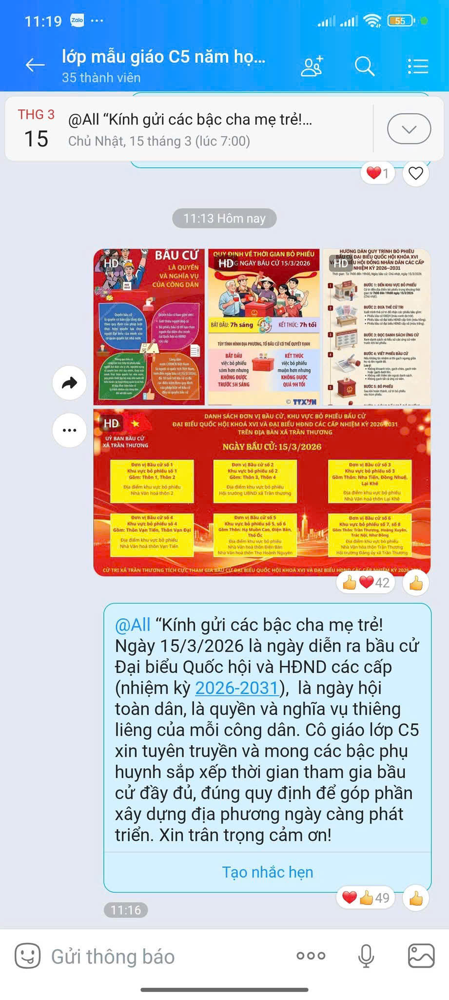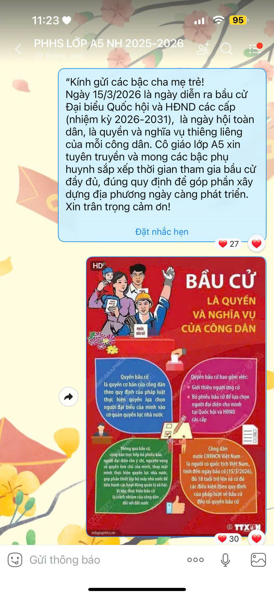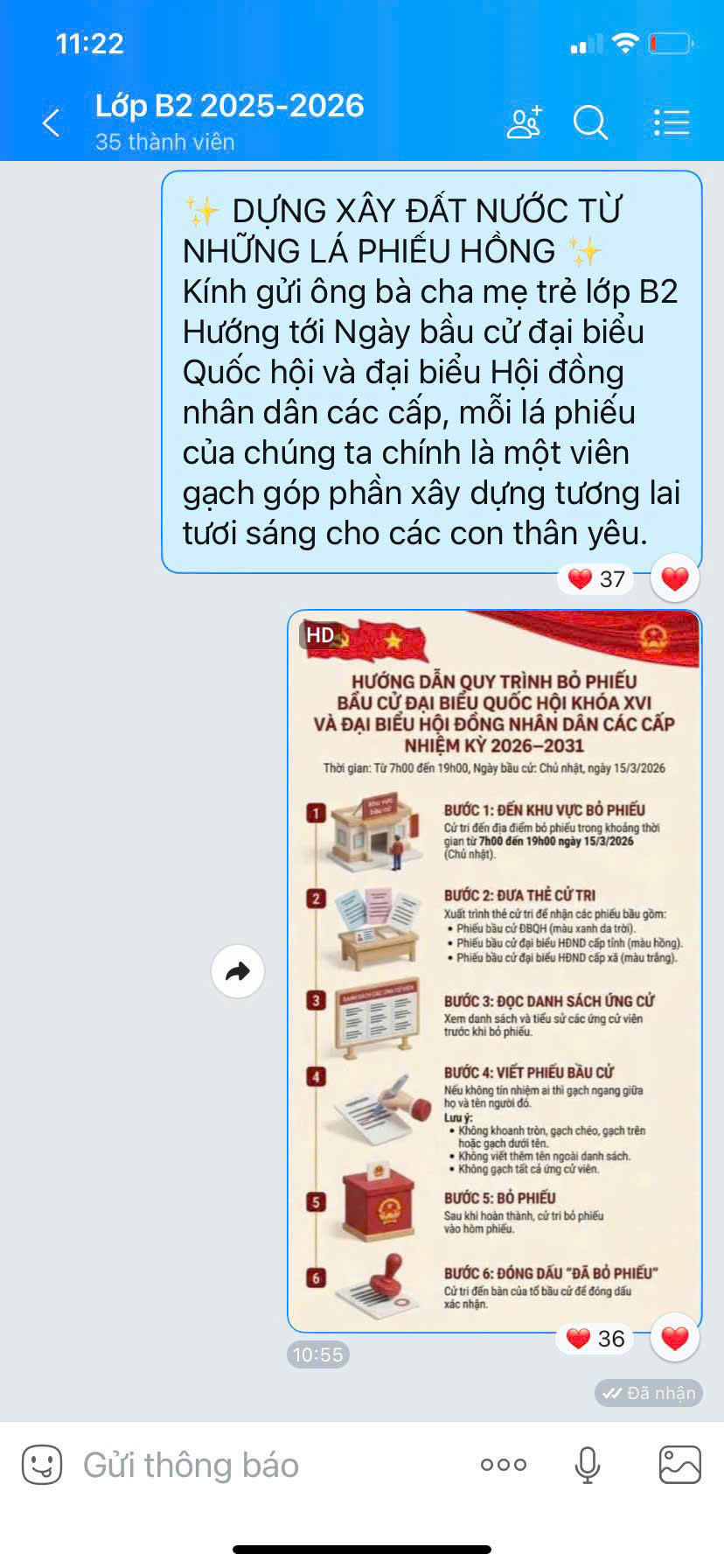 Nhà trường xin trân trọng cảm ơn các bậc cha mẹ và mọi người đã luôn quan tâm, theo dõi và đồng hành cùng các hoạt động tuyên truyền của nhà trường. Dưới đây là hình ảnh tuyên truyền về ngày bầu cử tại 100% các nhóm lớp.