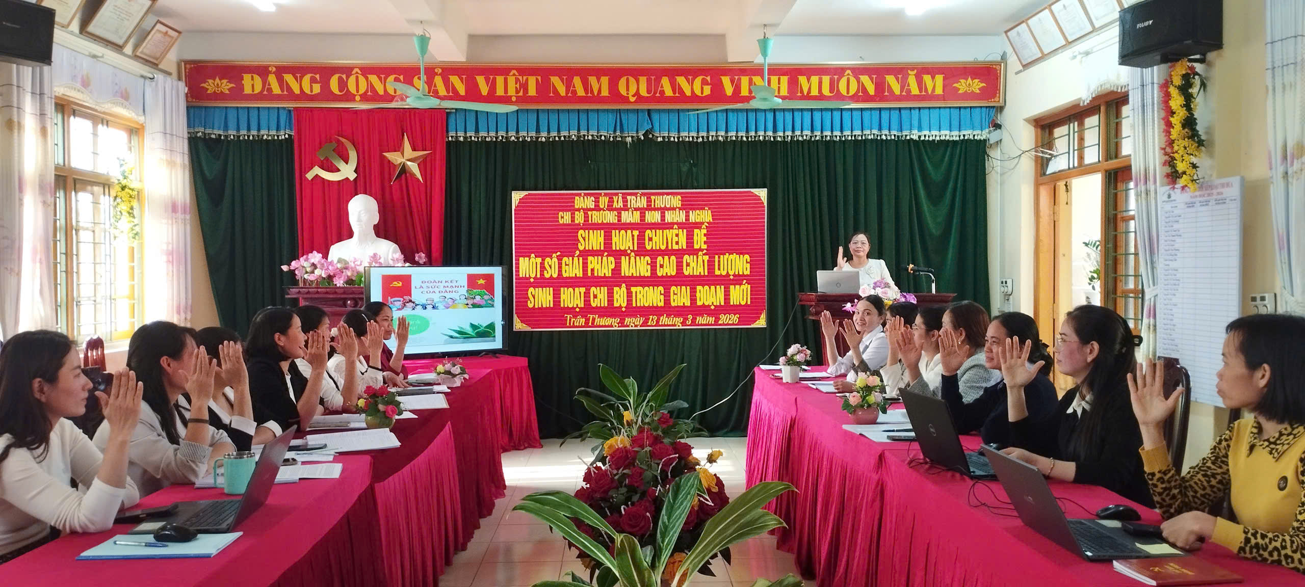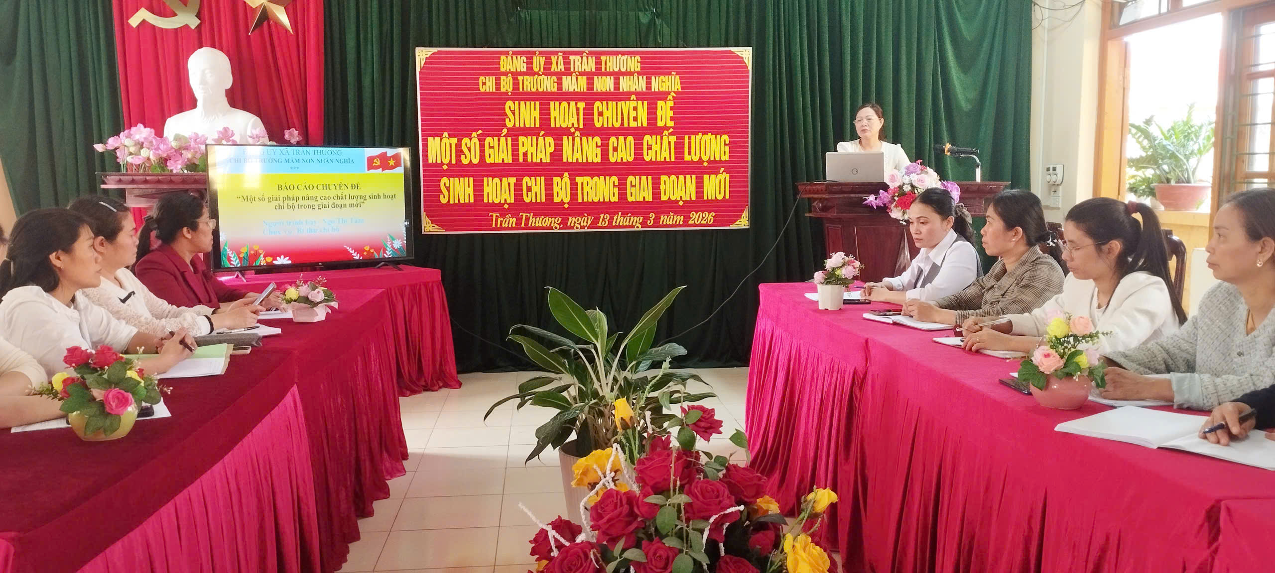 Ngày 13/3/2026, Trường Mầm non Nhân Nghĩa đã tổ chức buổi sinh hoạt chuyên đề với nội dung: “Một số giải pháp nâng cao chất lượng sinh hoạt chi bộ trong giai đoạn mới”.